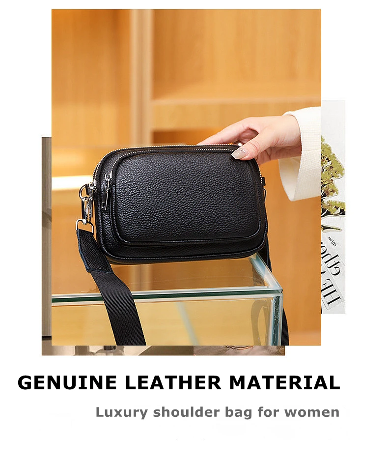 100% Genuine Leather Shoulder Bag For Women Rectangle Bags Crossbody Luxury Designer Handbag Female Solid Color Messenger